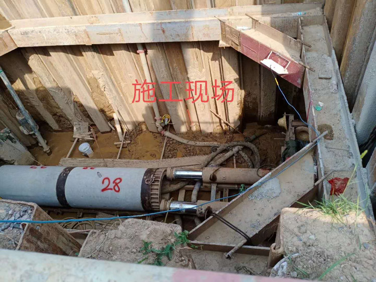 頂管機在液壓千斤頂助力下頂進時停止挖土,傳力柱上和兩